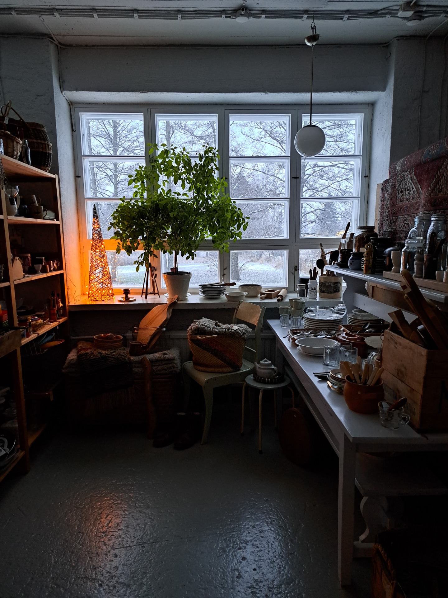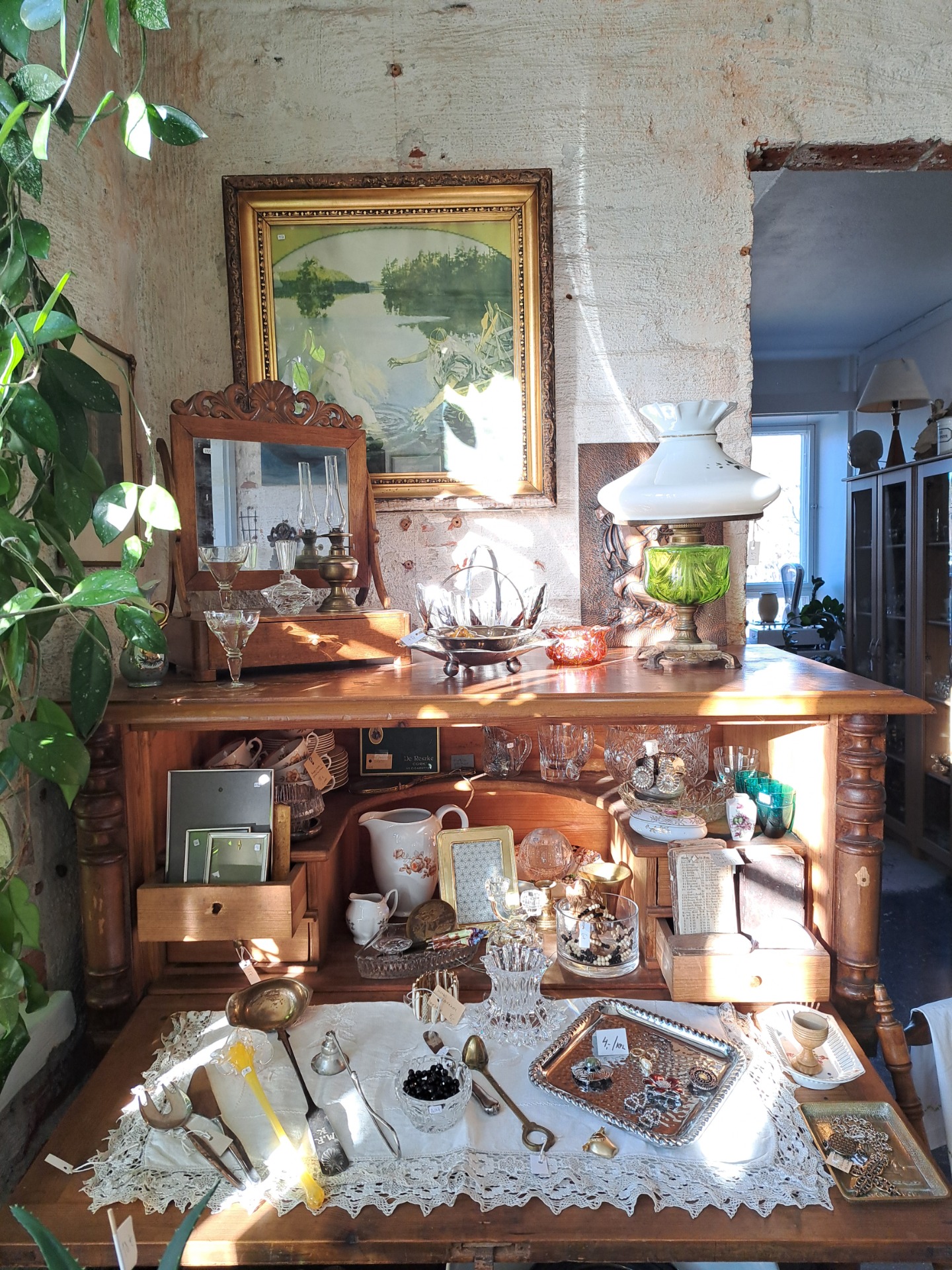 Monipuolinen valikoima menneen ajan arkitavaroita ja huonekaluja vanhassa täystiilisessä Sähkötalossa!